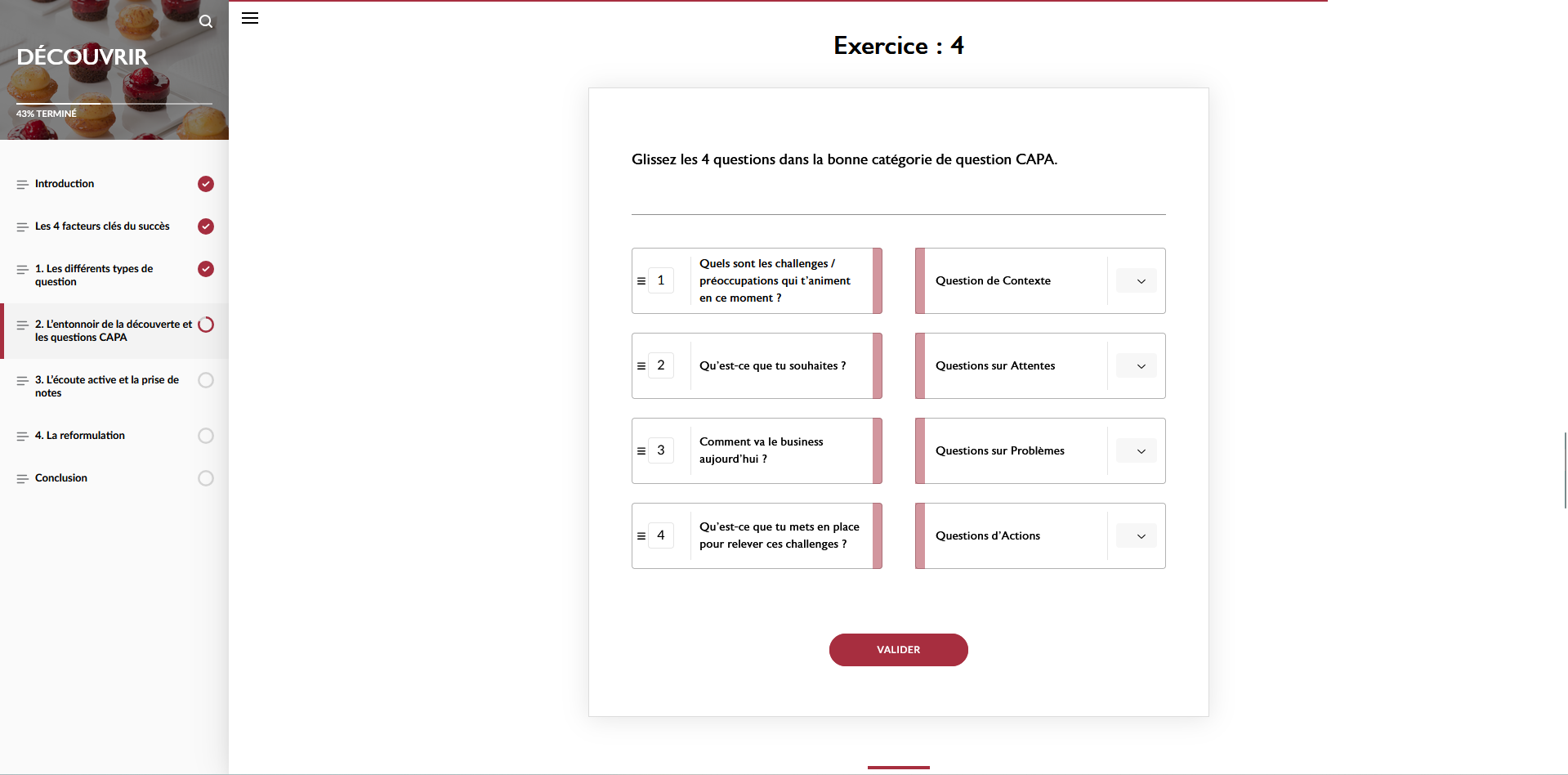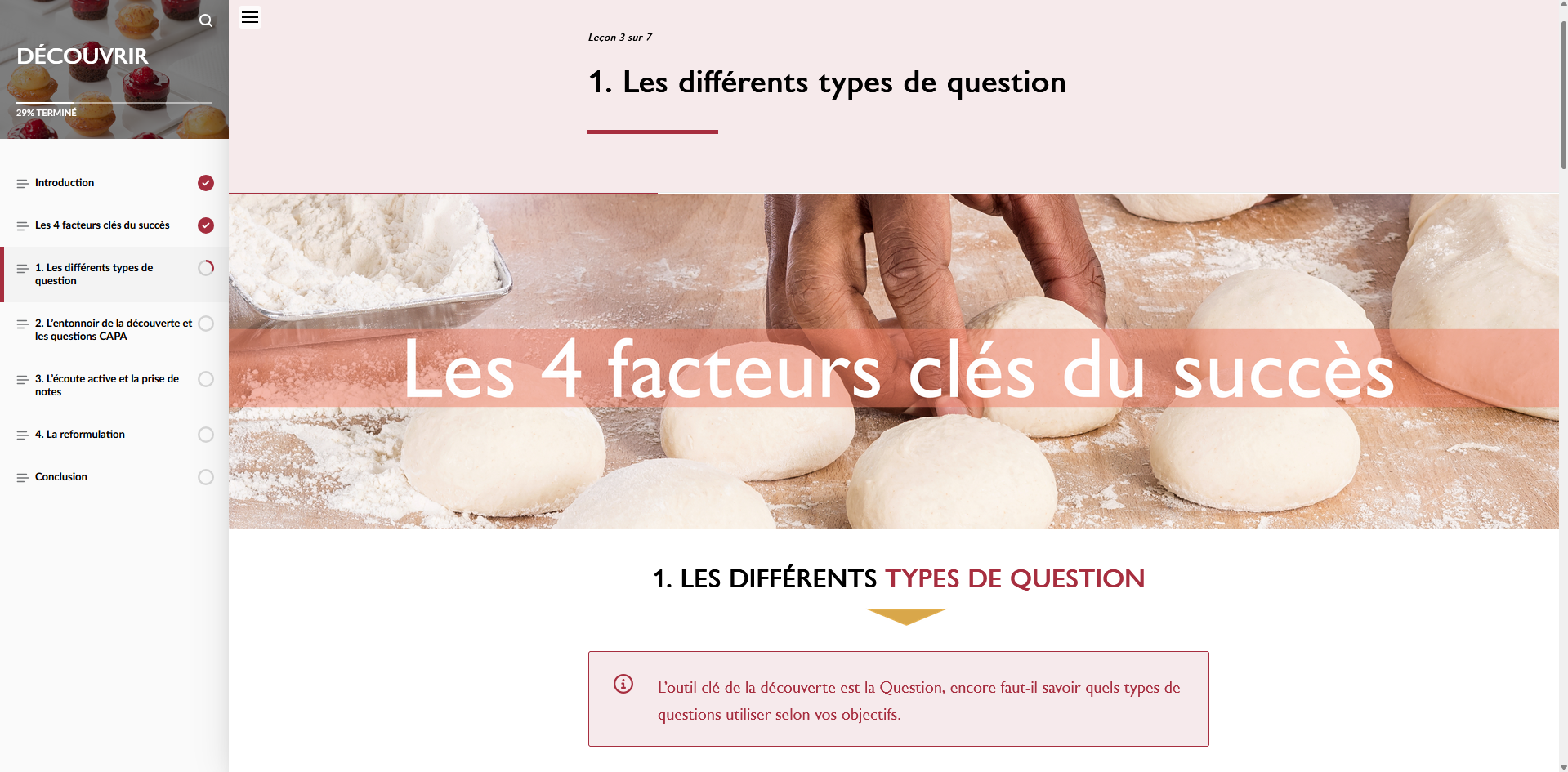 À travers des apports concrets et des mises en situation, le module forme les apprenants à maîtriser la phase de découverte, un moment-clé pour poser les bonnes questions, éviter les pièges fréquents, et construire une relation durable avec le client.