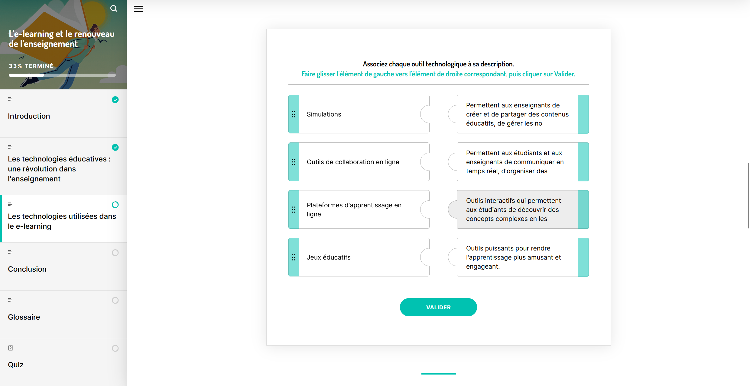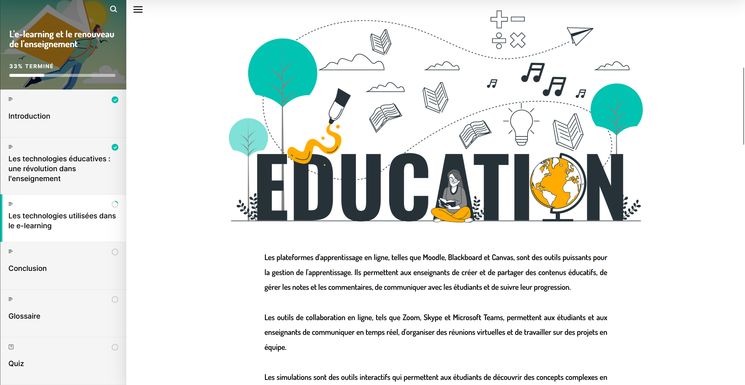 Le parcours invite les apprenants à réfléchir sur l’innovation en éducation, à découvrir les bénéfices concrets de l’intégration du digital, et à mieux comprendre la diversité des outils disponibles pour enrichir l’expérience d’apprentissage.